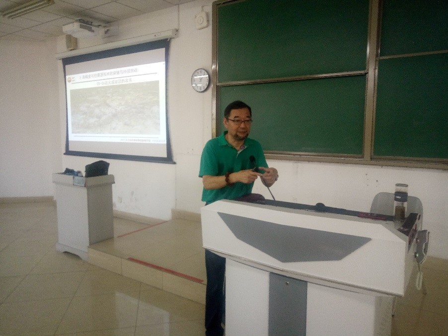 讲座期间,陶教授首先介绍了可控震源技术发展过程,然后总结了当前可控震源需要解决什么样的问题,并揭示了高精度震源技术的突破与持续的挑战,随后介绍了横波可控震源技术这一新的突破,最后展望了未来可控震源技术的发展方向与思考。陶教授深奥的讲解、学者的风范都深深吸引着学生,不仅使同学们对可控震源技术有了更深入的了解,也使同学们对国家地球物理科学的研究产生了浓厚的兴趣。